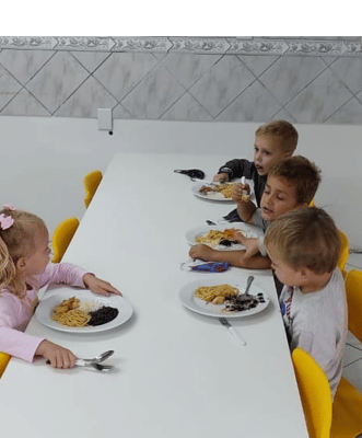 A alimentação é um dos pilares fundamentais do desenvolvimento infantil. No Spielhaus o cardápio foi cuidadosamente elaborado por profissionais da área. O almoço é preparado pela empresa Pratô e servido em buffet, cada criança tem autonomia para servir-se sendo este um momento de aprendizado e convívio social. O cardápio é variado e contém arroz, feijão, macarrão, legumes, 2 tipos de Proteínas (carne) e 3 tipos de saladas, além da sobremesa e suco natural. Os lanches são servidos e preparados na instituição, priorizando ingredientes naturais e frescos.